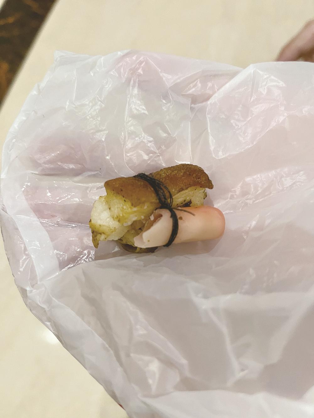 ▲不解肉块绑着异物。
