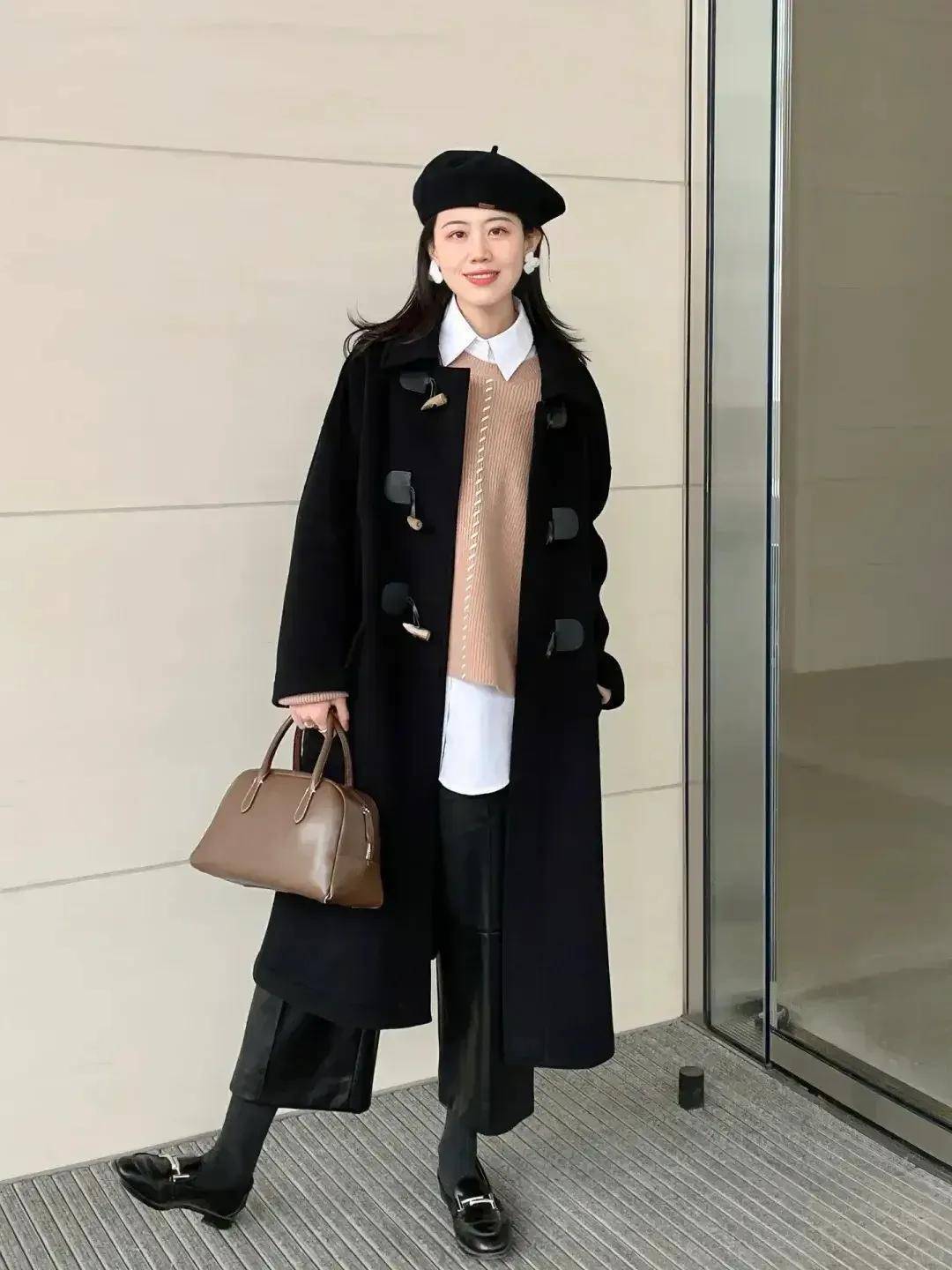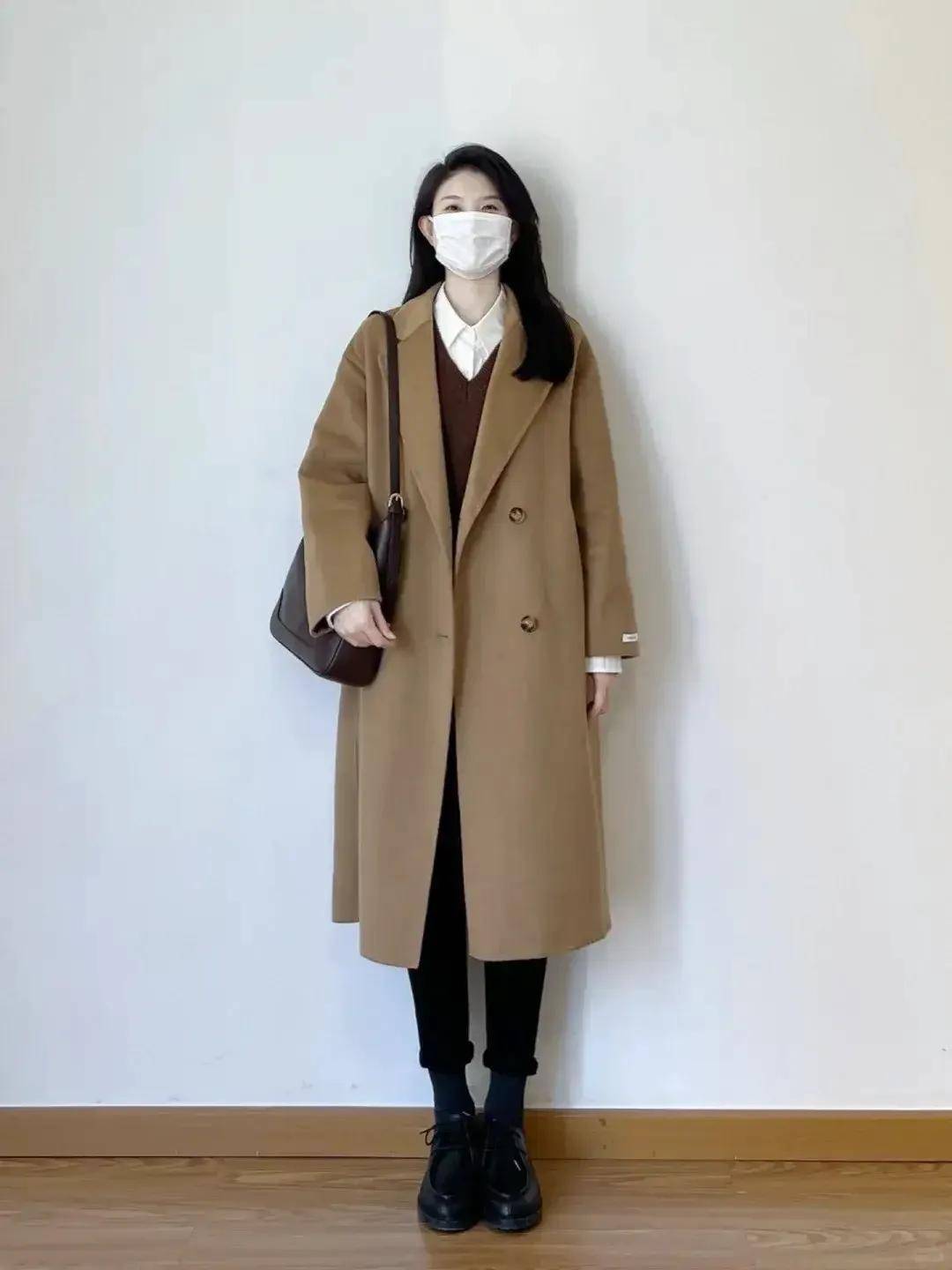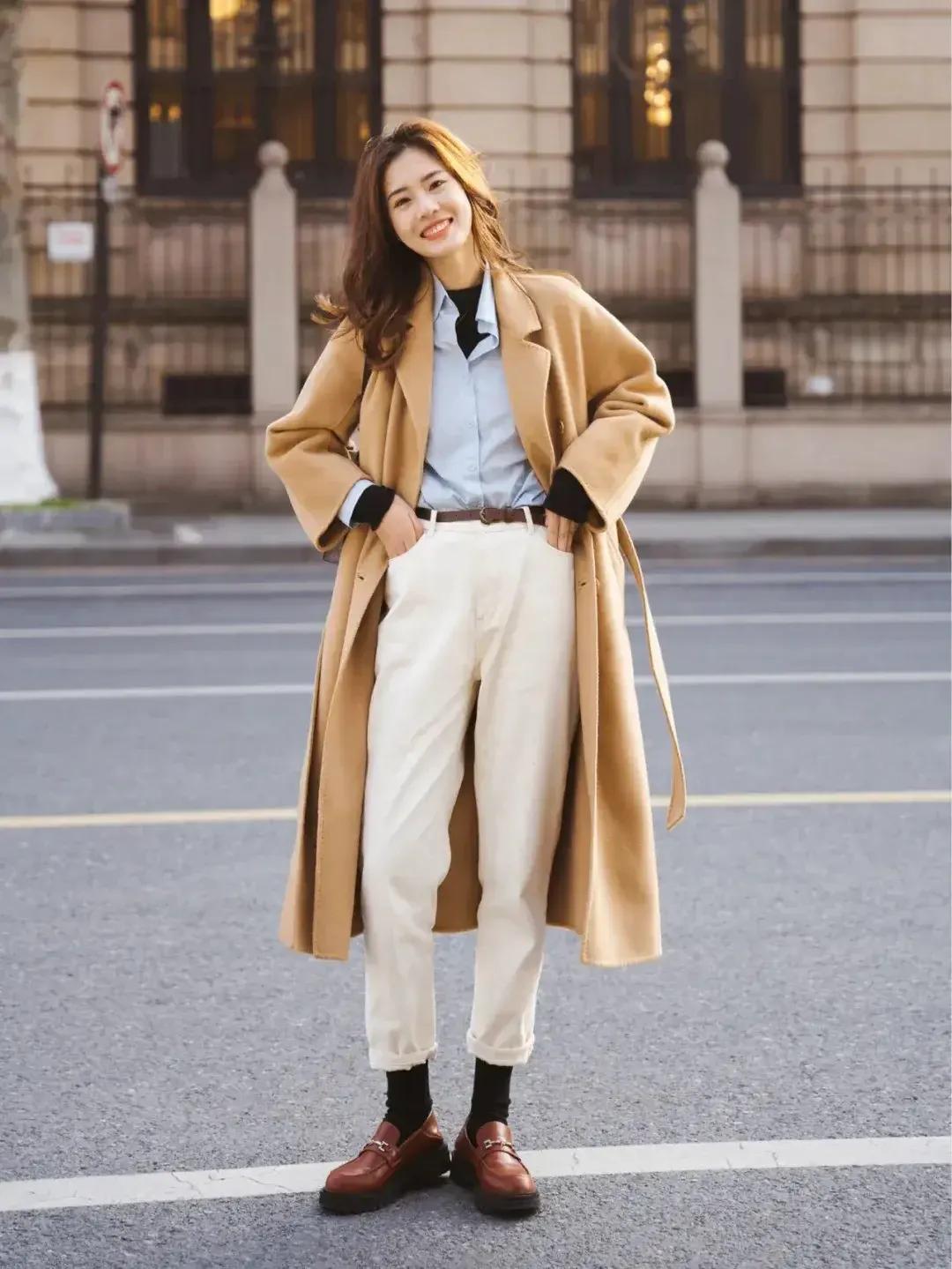 天生身材比例比拟好的情况下,充足不错聘用一条玄色的收脚裤来搭配上驼色的大衣,内搭一件 V 领的棕咖色毛衣,叠穿白色衬衫,加上驼色的大衣外衣,这么的造型更显年青有活力。