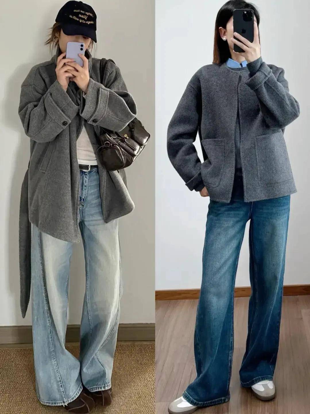 还不如聘用天生就领有先锋元素的牛仔阔腿裤,搭配上一件短大衣外衣,内搭玄色真挚毛衣,脚穿一对德训鞋,这么的穿衣打扮照实会更干练更失业。