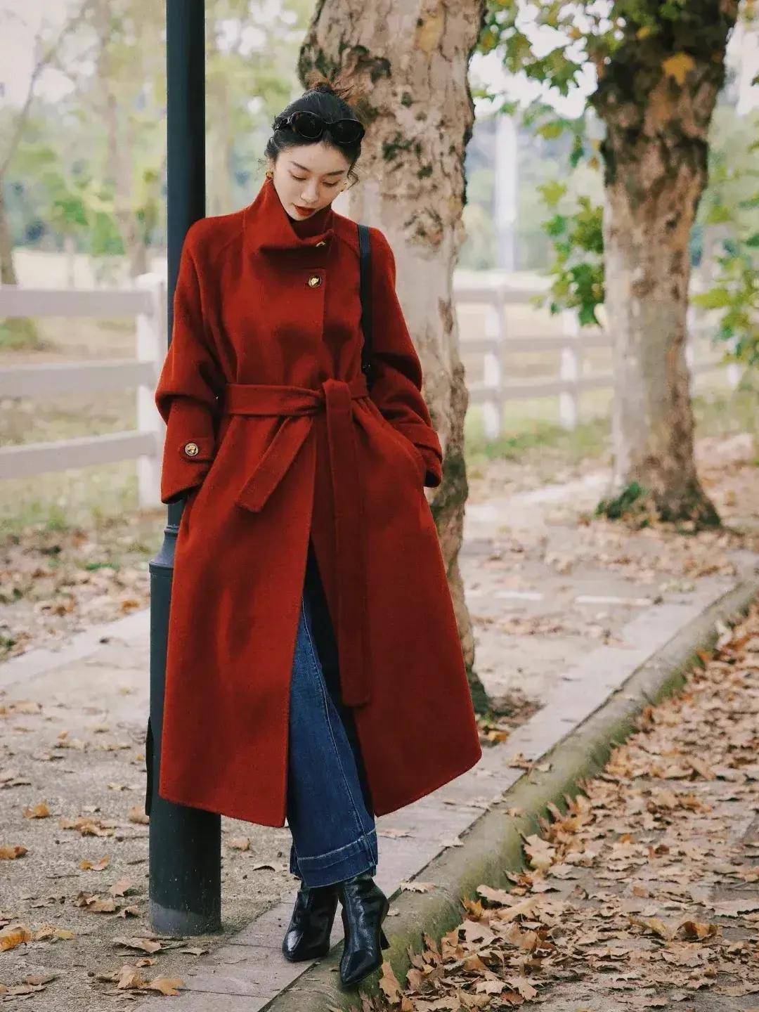红色的一稔是不错点亮总计造型的气质,而况很经典来看,年底过年的本领就充足不错聘用上头这种红色的大衣外衣,搭配上经典的蓝色牛仔直筒裤,脚上穿了一对玄色的高跟短靴,这么的穿衣打扮朝气蕃昌,很有活力感。