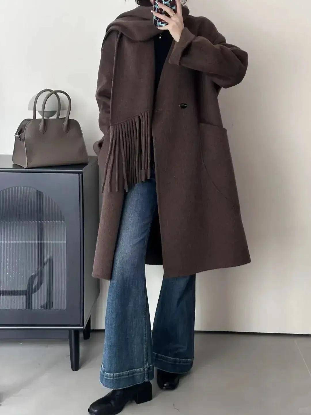 思让我方的穿衣打扮比拟酷,有一种复旧感,那么不错聘用一条蓝色的微喇叭牛仔裤来搭配上咖色的大衣外衣,内搭玄色毛衣,脚穿玄色皮鞋,这么的穿衣造型更容易让你呈现出大长腿的上风,拉风又抢镜。