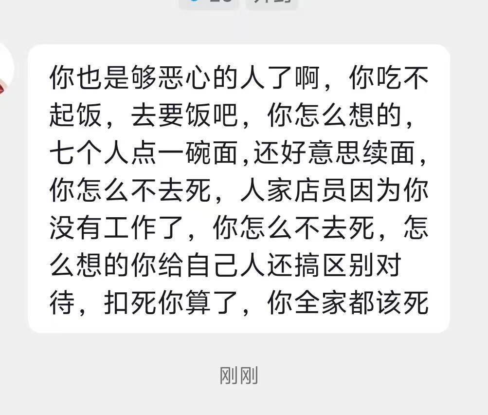 马女士给与极目新闻记者采访时示意,她和家东谈主因为此事遭受的网络暴力到现时齐莫得住手。“店雇主发布视频后,咱们大东谈主和孩子面部被曝光,立时遭受劈头盖脸的辱骂、网暴,身心遭到严重伤害。”马女士称,有东谈主说她挑升威迫,拿孩子当器具;后头还说她哭惨,教学低下;谴责她把我方说成是受害东谈主,称她不要脸;还阴阳她一个指摘把面馆给干倒闭了等等。甚而还有东谈主骂她的孩子,将一些网传的空幻信息添枝接叶地写成小作文在网络上传播,直到现时10月了齐还挂在网上。